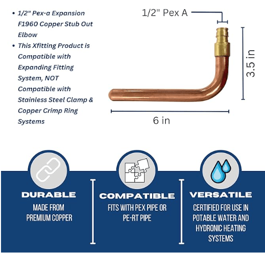 1/2 inch Pex-A Expansion Stub Out Elbow | 3-1/2 Inchx 6 Inch